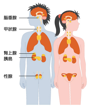 由具有分泌功能的細胞組成的組織或器官,稱為腺體。有的腺體細胞的分泌物需經由導管將所分泌的物質排出去,這樣的腺體稱為外分泌腺,例如:肝臟所分泌的膽汁由膽管送至小腸作用;而有些腺體所分泌的物質不需要經由特殊的導管,而是透過血液來運輸,稱為內分泌腺。人體藉由內分泌腺所分泌激素(荷爾蒙)來調節生理機能,分泌量過多或過少,作用時機過早或過晚,都對動物體有害。